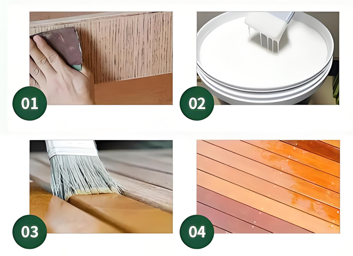 Preparação da superfície: A madeira deve estar limpa, seca, sólida e livre de contaminantes (poeira, graxa, tinta/verniz velho e escamoso). Lixar geralmente é essencial para a adesão. Freqüentemente, são necessários primers (use primers especificados pelo fabricante).